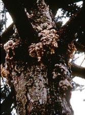 Large volumes of pitch ooze from the holes made in the trunk by these insects.